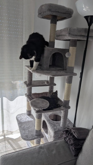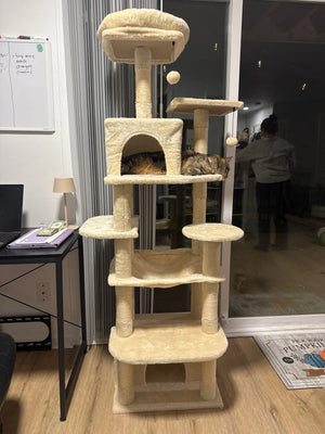 Our tower offers unparalleled stability, spacious hammocks, and durable scratching posts, ensuring both comfort and entertainment for your cats unlike others.