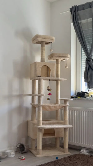 This cat tower provides everything your feline friend needs for play, rest, and exercise, transforming your home into a cat haven.